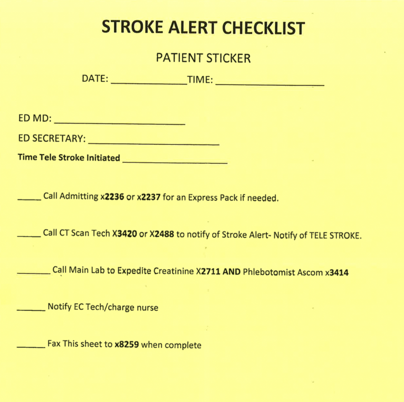 Our checklists were a success in field testing, with both hospital teams reporting that ED staff had found the checklist useful as a memory aid and cognitive offloading tool. After the pilot period, results from the study will be published in stroke journals and the checklists made available for broader public use.